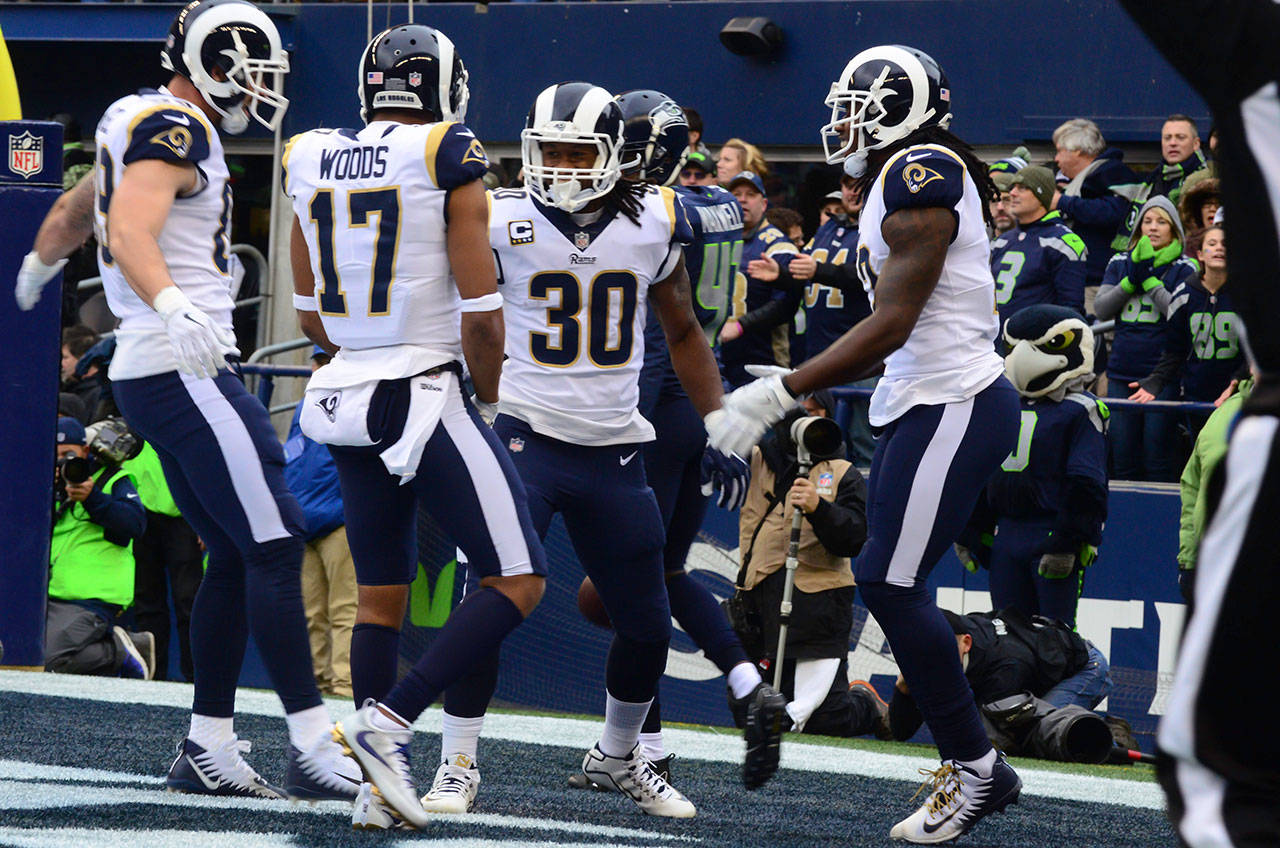 SEATTLE (AP) — Todd Gurley corrió para 152 yardas y logró cuatro anotaciones en apenas dos cuartos y medio, para que los Rams de los Ángeles humillaran el domingo por 42-7 a los Seahawks de Seattle, con lo cual están a un paso de conquistar su primer título divisional desde 2003.