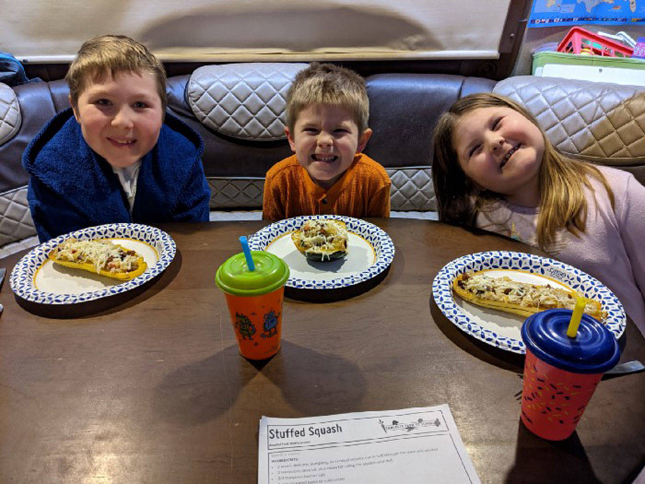 Está claro que los kits de comida son un gran éxito. En octubre, Atosha Rhoads, de Concrete, compartió una foto de sus tres hijos escolares, Joseph, Lincoln y Ellen, cocinando una calabaza delicata rellena (ver arriba). Ella dijo: “¡La cena fue un éxito! ¡No podía creer que todos se lo comieron! ¡Aprobado por los niños!”