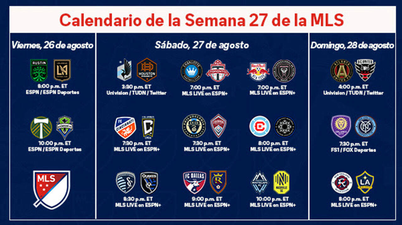 Cinco partidos de la MLS serán transmitidos por televisión nacional en la Semana 27