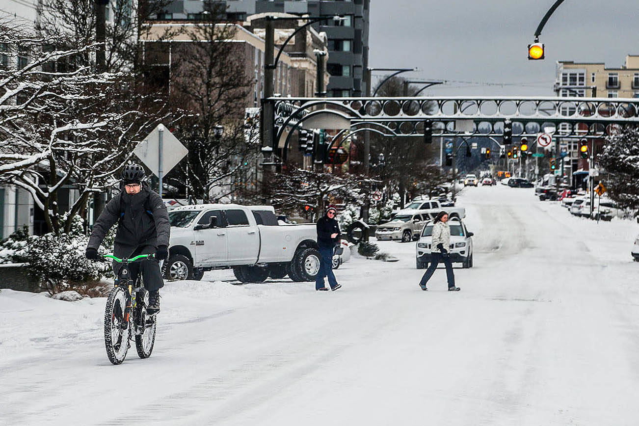 Una tormenta de invierno cubrió la región de Puget Sound en nieve y hielo el domingo y el lunes, lo que provocó el cierre de las escuelas y las oficinas debido a la nevada, y se espera aún más nieve.