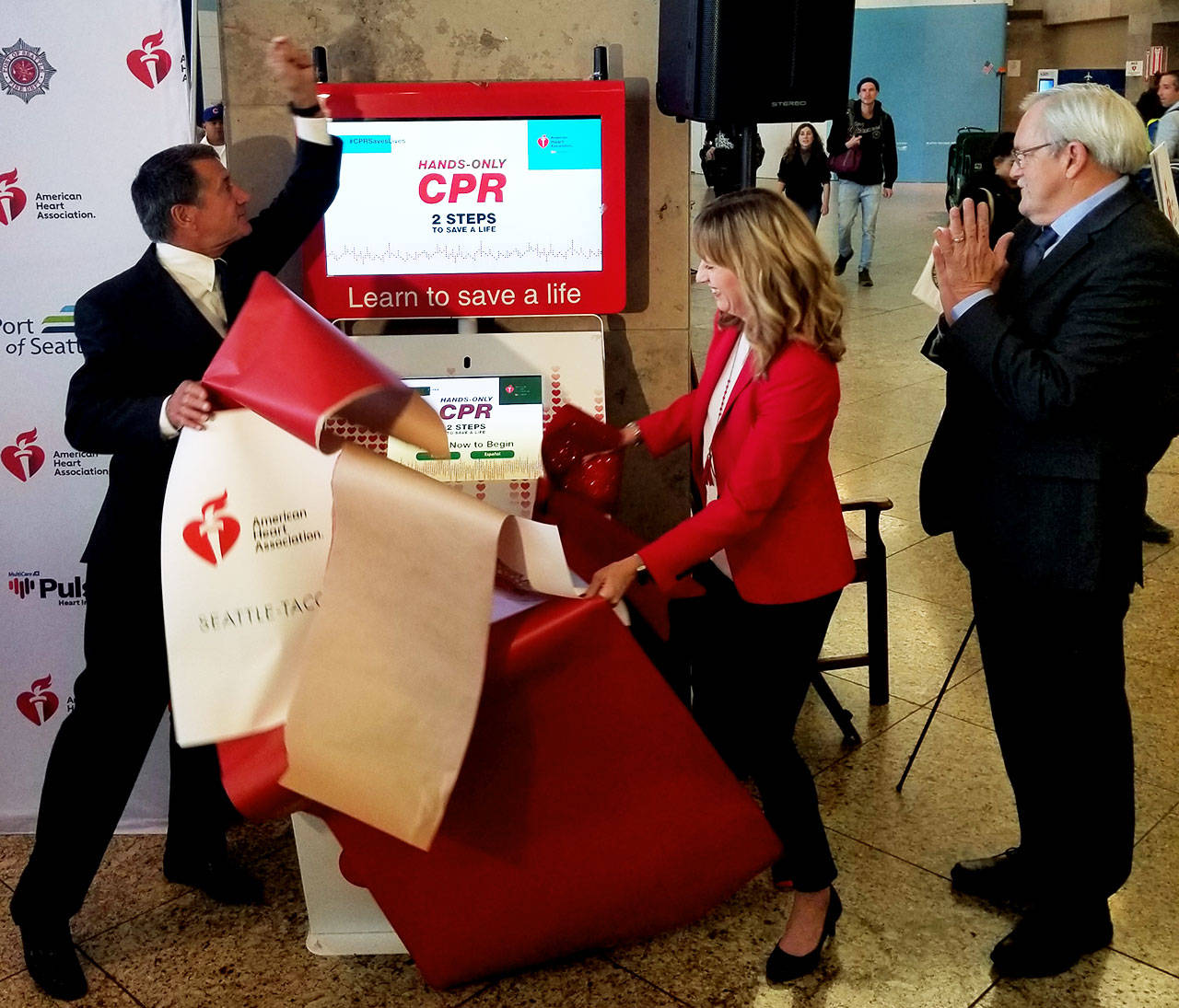 SEATTLE – La Asociación Americana del Corazón (American Heart Association), una organización sin fines de lucro lider en la salud cardiaca y cerebral, inauguró un punto de capacitación de resucitación cardiopulmonar (RCP) en el aeropuerto Internacional de Seattle-Tacoma (Sea-Tac) previo a la ocupada temporada de viajes decembrinas.