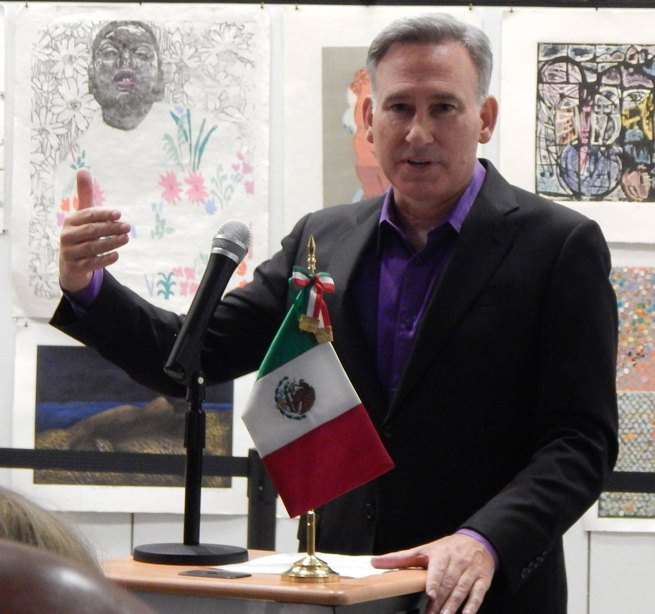 Dow Constatine, Ejecutivo del Condado King, fue el invitado especial. El Sr. Constatine expreso sentir gratitud al ser invitado a celebrar el aniversario 209 de la Independencia de México sobre los españoles. “El Condado King es el hogar de este Consulado Mexicano, que sirve al noroeste de estados unidos, estamos muy orgullosos de formar esta relación tan cercana con ellos,” aclamo el ejecutivo Constatine.